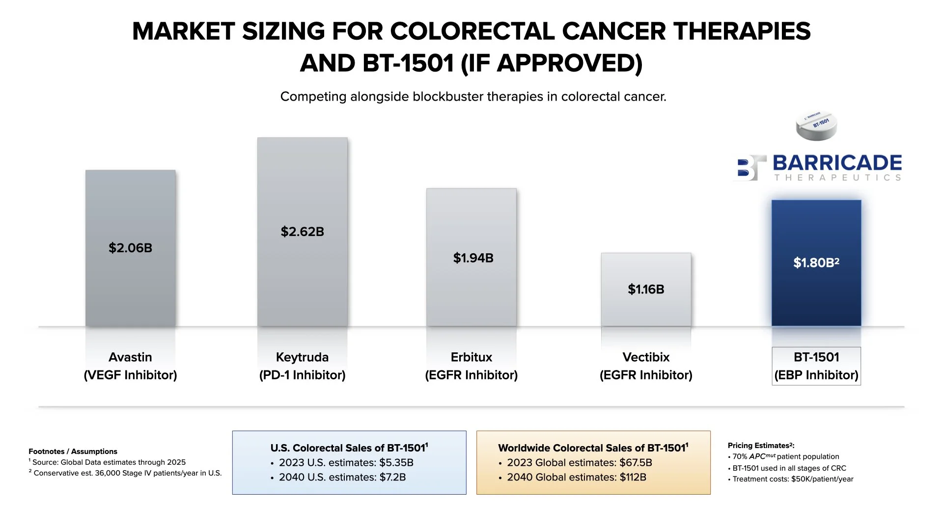 Barricade’s lead program, BT-1501, is being developed to target genetically defined colorectal cancer biology, advancing a precision approach for patients who need new options.
