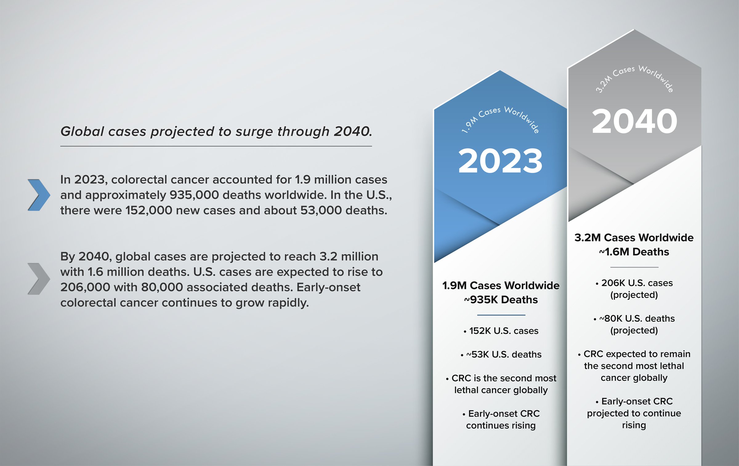 CRC continues to grow in prevalence globally, with increasing incidence in younger populations and persistent mortality in advanced disease. This expanding burden reinforces the need for new treatment strategies.